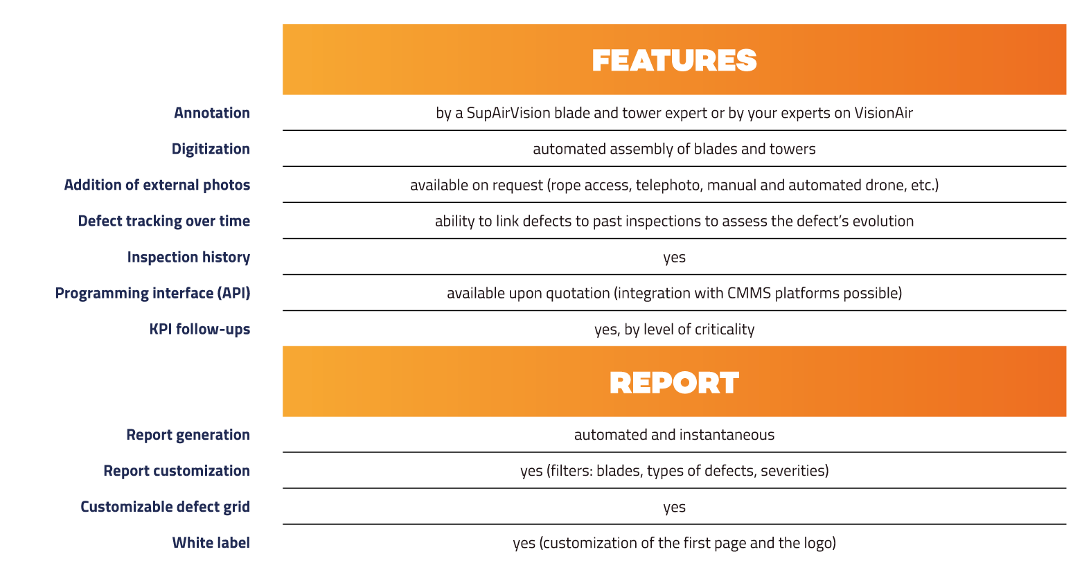 Centralise your inspection data by using VisionAir, the cloud platform developed by SupAirVision. You can find the record of your inspections and reports associated to the Sherlock, Volta and Clarity inspections. On VisionAir, annotate, read, stock, and edit your inspection reports automatically.