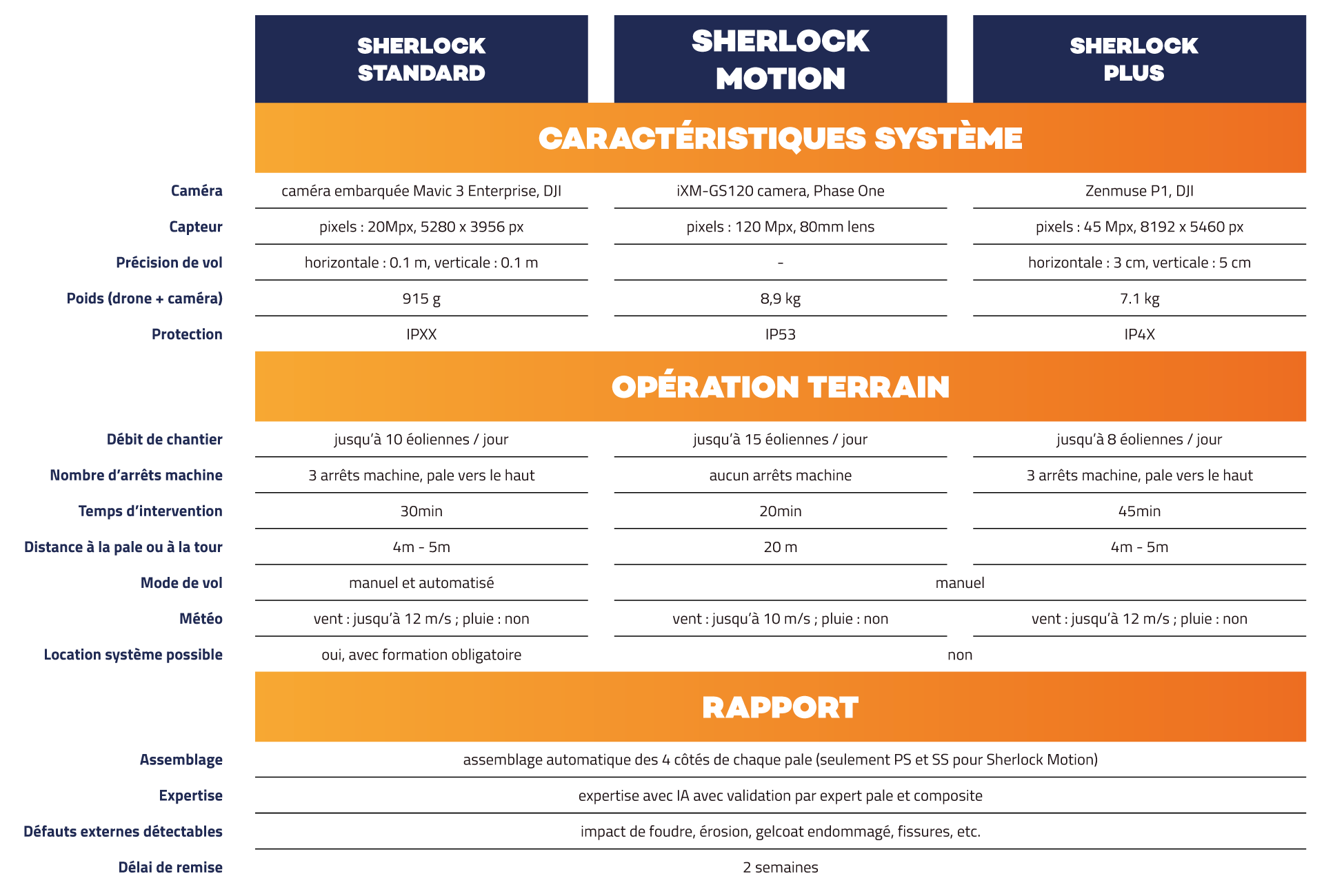 Profitez d'une qualité d'image exceptionnelle, même par vents forts. Sherlock Motion accélère les inspections, doublant ainsi la productivité et permettant des interventions urgentes en toute efficacité.